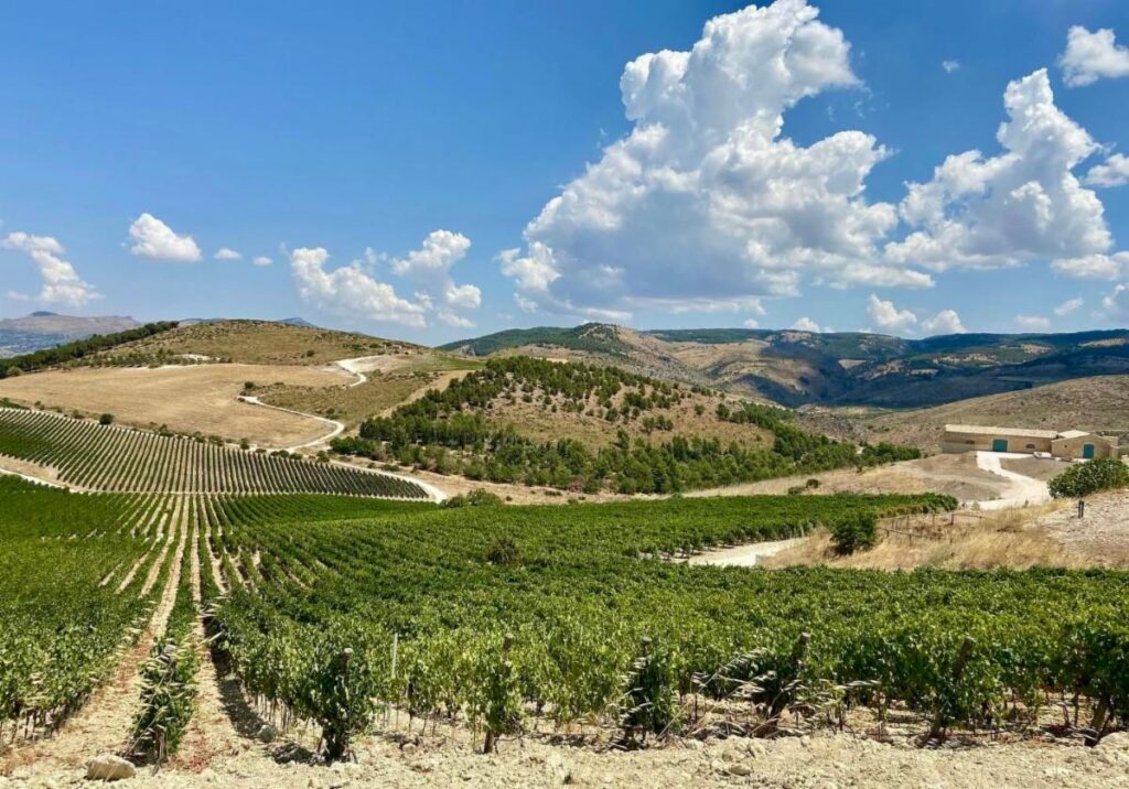 Perched on the western edge of the Sicani Mountains, between Sciacca and Sambuca di Sicilia, this vineyard rises 400 to 450 meters above sea level, where slopes, glades, and rocky ridges weave a landscape of rare beauty.